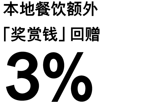 由2026年3月14日至6月13日,凭汇丰信用卡累积合资格签账净额满港币10,000元,当中的合资格本地餐饮签账可获额外3%「奖赏钱」回赠,推广期内最多可获额外$300「奖赏钱」。