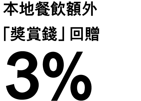 由2026年3月14日至6月13日,憑滙豐信用卡累積合資格簽賬淨額滿港幣10,000元,當中的合資格本地餐飲簽賬可獲額外3%「獎賞錢」回贈,推廣期內最多可獲額外$300「獎賞錢」。