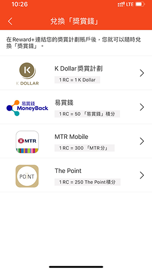 - 您須持有有效的MTR Mobile賬戶/「易賞錢」手機應用程式賬戶/The Point賬戶並分別將它們連結至您的Reward+,方可將「獎賞錢」兌換成「MTR 分」、「易賞錢」積分或「The Point」積分。
