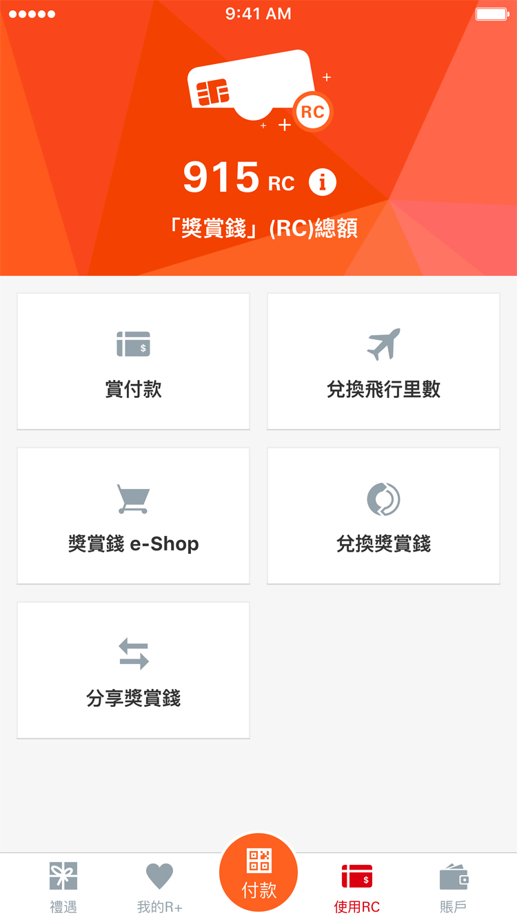 開啟滙豐Reward+,於「使用RC」頁面以流動保安編碼或生物認證功能登入,並選取「兌換獎賞錢」。